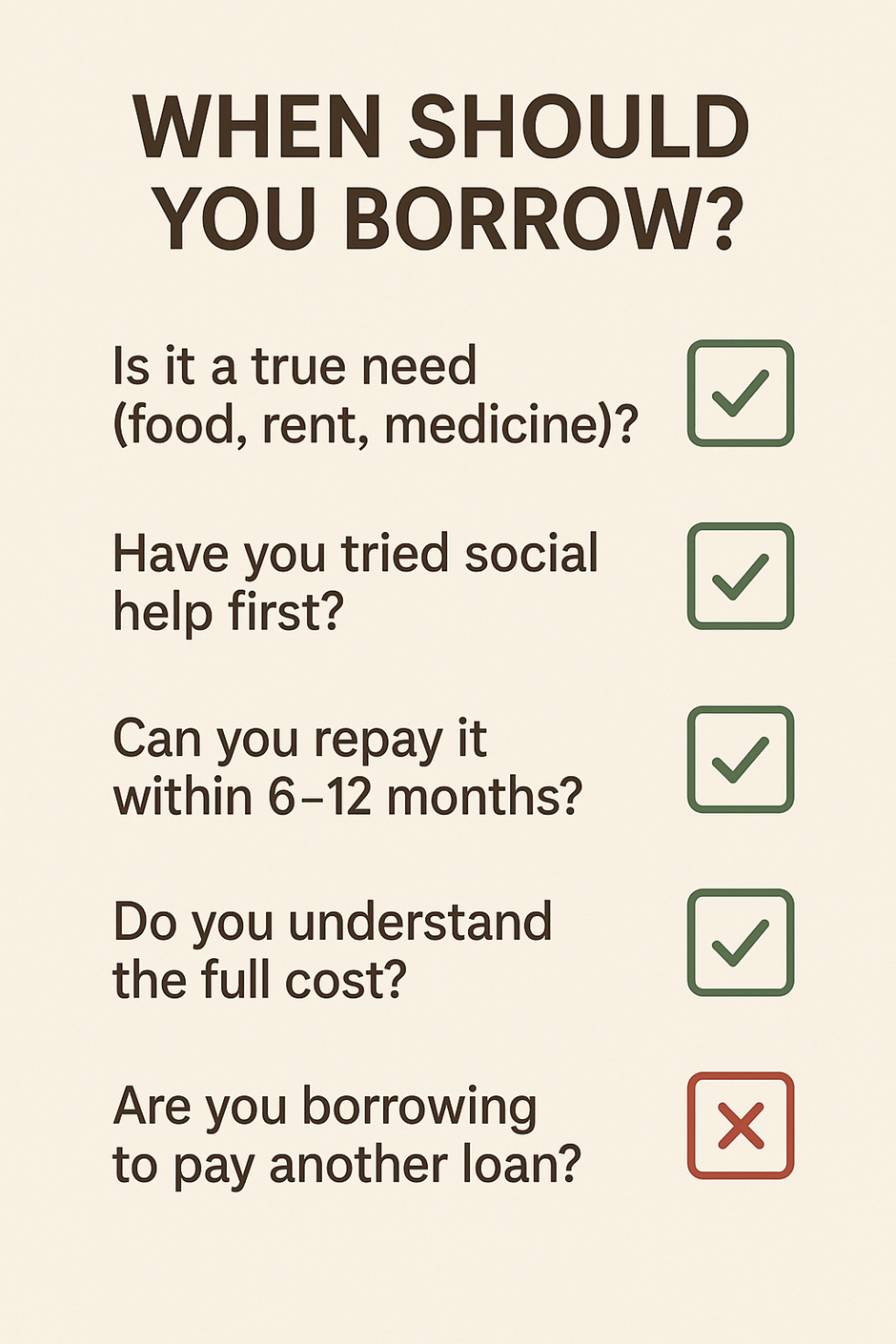 It begins with your safe borrowing, such as being aware of all the options and identifying warning signs of poor deals. This cushions families at the time of need.